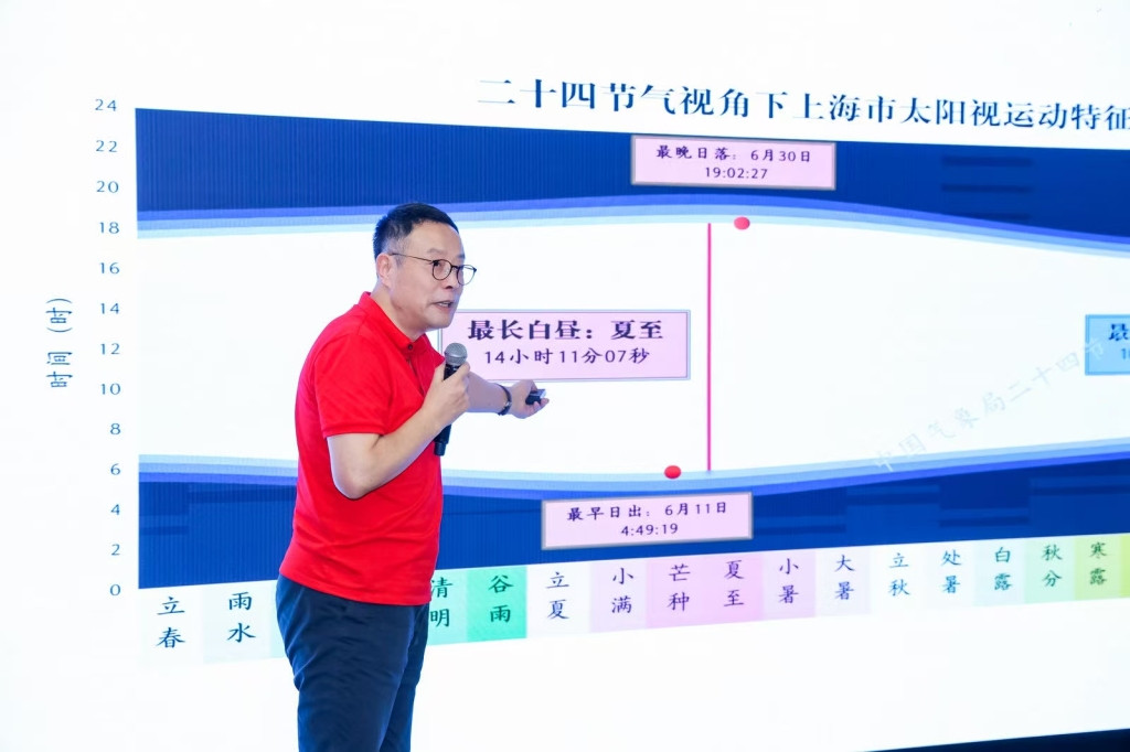 “基于二十四节气科学与文化研究的传播思考”这个分享议题让人不得不准备好接受一堂专业而艰深的气象课,宋英杰在说出“开始琢磨那些地名”后深吸一口气以渐快的语速说道,“比如西北地区东部、华北东北、江淮流域、江南、华南、西南地区东部小到中雨,局部地区有大到暴雨,还有海区,渤海、黄海、东海、台湾海峡、台湾以东、菲律宾以东……”像极了相声中贯口的开场,一下逗笑了在场的所有人,让大家感受到了宋英杰的专业性和幽默感。