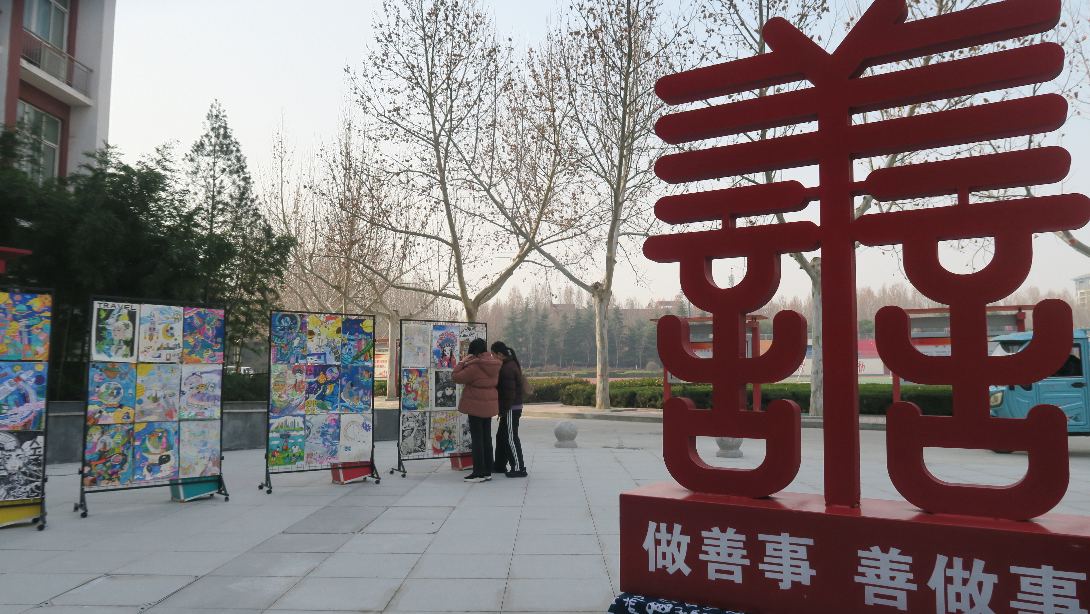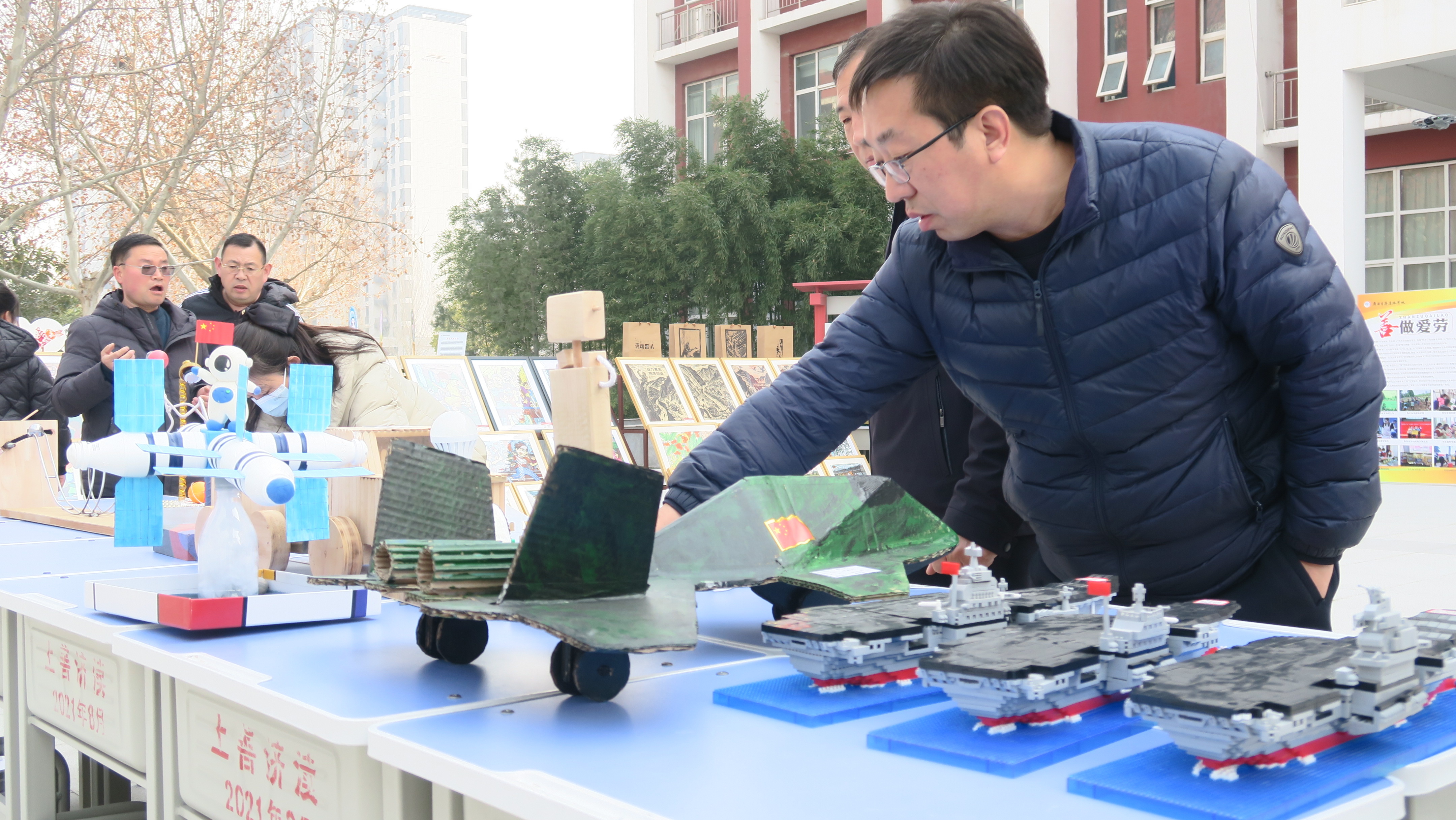 教学方式的变革,带来了丰硕的成果。会场外,布置了德育、智育、体育、美育、劳动教育五大领域的成果展示,呈现了“善星晋级”德育评价、教学质量稳步提升、科技作品琳琅满目、体育运动有声有色、书法绘画丰富多彩的办学成绩。师生共同制作的柿子醋、苹果醋等特色产品也参加了展示,充分体现了"五育并举"的育人理念。